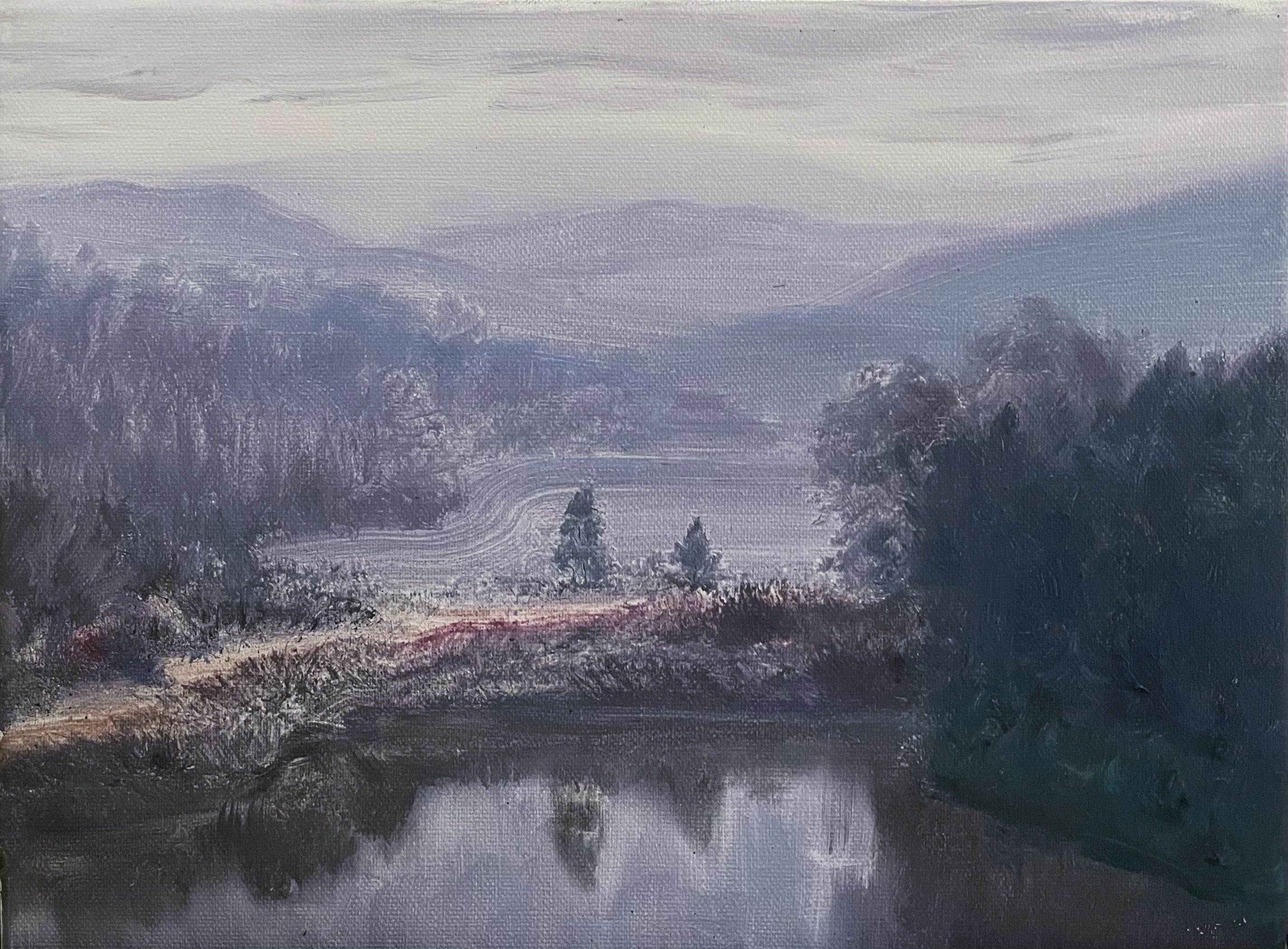 對袁鋒淵而言,桑梓的景觀不單是視覺標識,而是一種鄉情操心,是創作靈感的起頭,亦然他不雅察宇宙、融會宇宙的一個出口。在《拂曉》系列中,他畫的如故家鄉雷州半島的故事,他刻意強化了雷州半島特有的濕潤霧氣,畫面中若存若一火的農舍抽象與褭褭炊煙,組成了一種帶著體溫的視覺操心。在他的操心中,“這些霧水是有分量的,就像小時候趴在母親背上感受到的濕度與溫度。”和大多藝術家將鄉愁作為創作母題訪佛,袁鋒淵也把這種將地輿特征調整為臉色載體的智力,形成了他藝術抒發的底色。